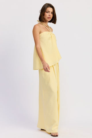 LINEN WIDE LEG PANTS WITH ELASTIC WAIST