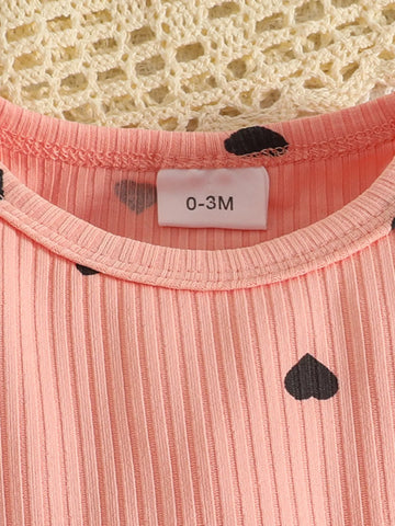 Children's Heart Print Ruffle Trim Bodysuit Dress with Headband