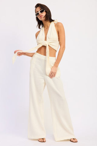 DOUBLE GAUZE HALTER NECK CROP TOP