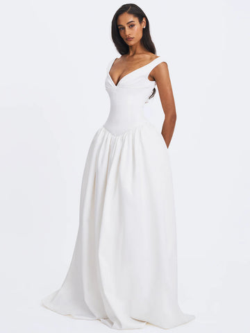 Materials: Satin Length From high point shoulder: Approx 66.5 inch / 169 cm Stretch Factor: Non Stretch Clean: Dry-clean only Model is Wearing a Size XS (US-2) Model is 5'11'' Color may vary due to lighting on images. The product images (without model) are the closest to the true color of the product.