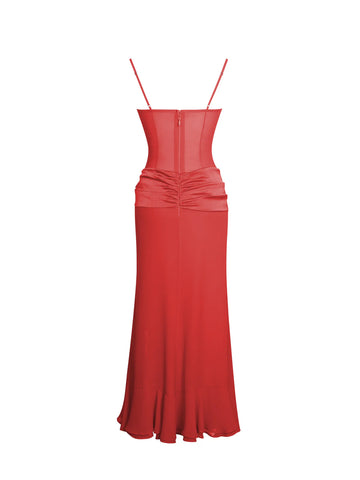 Dahlina Red Ruched Waist High Slit Maxi Dress