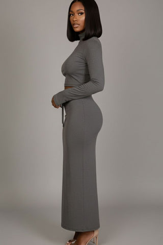 Mock Neck Bell Sleeve Crop Top & Maxi Skirt Set