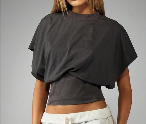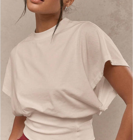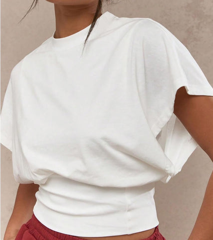 SHORT SLEEVE CREW NECK CINCHED WAIST TOP