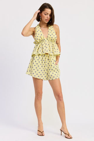 TIE BACK HALTER TOP WITH RUFFLE DETAIL