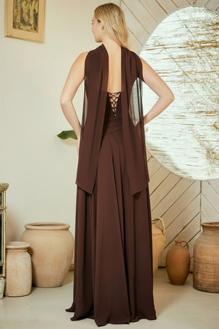 Giovana Espresso Sweetheart Draped Mesh Maxi Dress