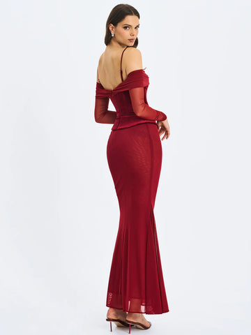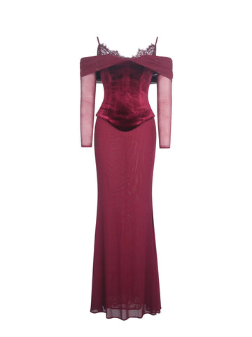 Maybelle Magenta Lace Strap Peplum Maxi Dress