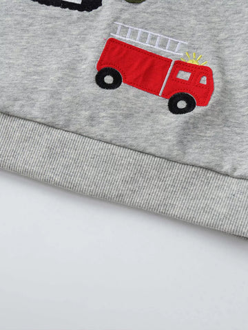 Children's Cartoon Vehicle Graphic Crew Neck Sweatshirt
