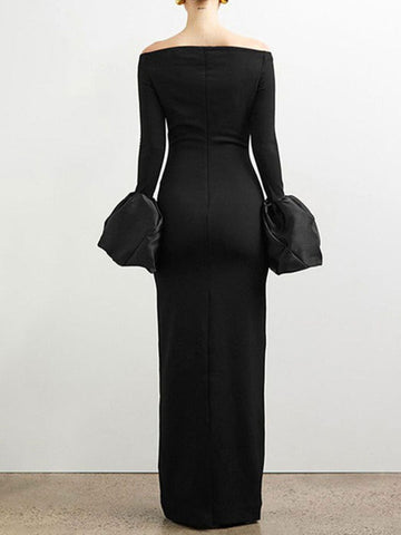 Off-Shoulder Flounce Sleeve Maxi Dress