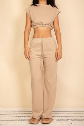 Elastic Hem Crop Top & Wide Leg Pants Set