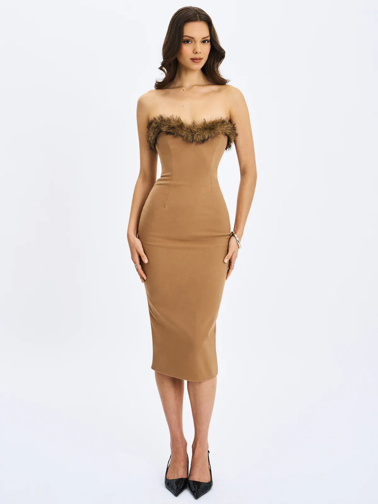 Rayanne Chestnut Fur-trimmed Sweetheart Maxi Dress