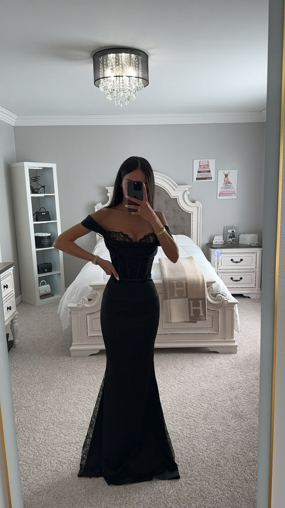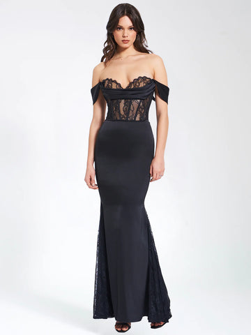 Materials: Double Duchess Luxe Satin / Lace Length from underarm: Approx 55.3 inch / 140.5 cm Stretch Factor: Non Stretch Clean: Dry-clean only Model Is Wearing A Size XS (US-2) Model Is 5'11'' Clean: Dry-clean only Color may vary due to lighting on images. The product images (without model) are the closest to the true color of the product.