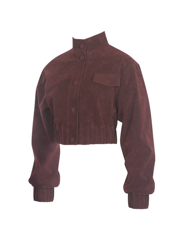 Farryn Mahogany Vegan Suede Cropped Bomber Jacket