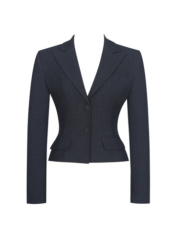 Quinne Navy Striped Single-Breasted Peplum Blazer