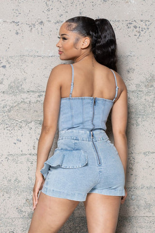 DENIM FRONT SIDE RUFFLE SHORTS
